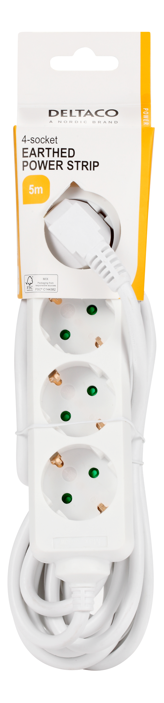 Earthed power strip, 4x CEE 7/3, 1x CEE 7/7, child protected, 5m, white